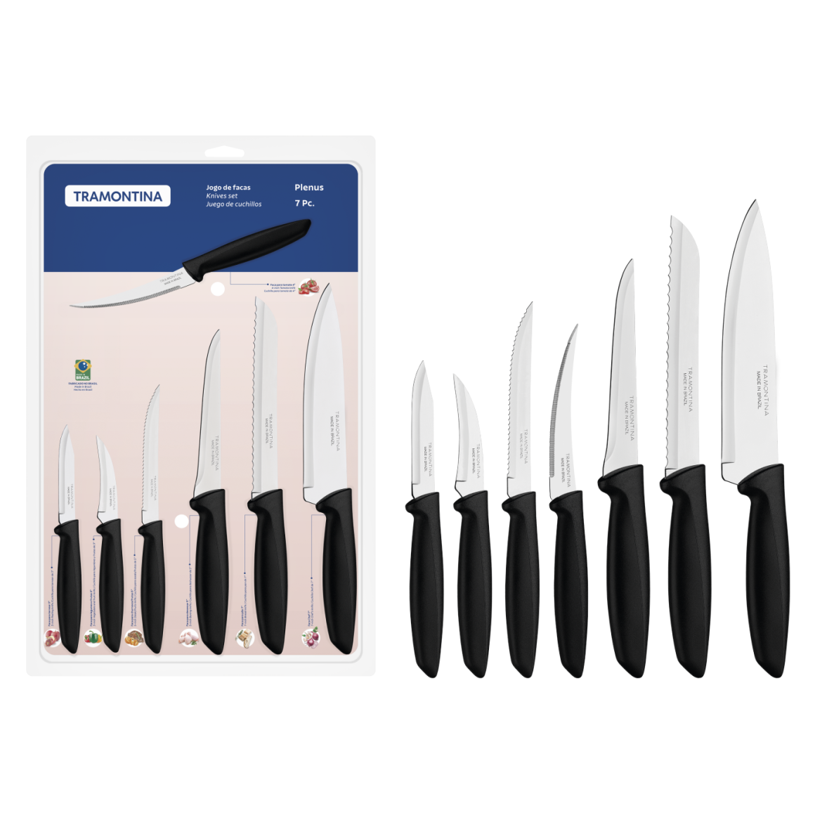 TRAMONTINA,JOGODEFACAS,7PCS,PLENUS,PRETO,SORTIDOS,LAMINAS,ACOINOX